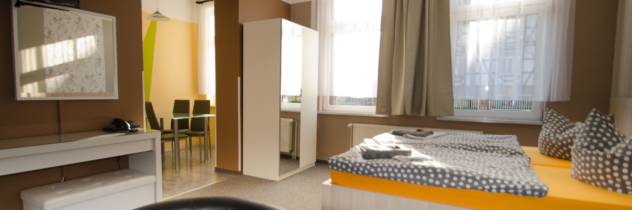 Firmen erhalten bei Zimmerbuchung von Montag - Freitag (4 Nächte) Rabatte auf den Einzelzimmerpreis und bekommen nach Verfügbarkeit Doppelzimmer bzw. Appartement nach Verfügbarkeit.